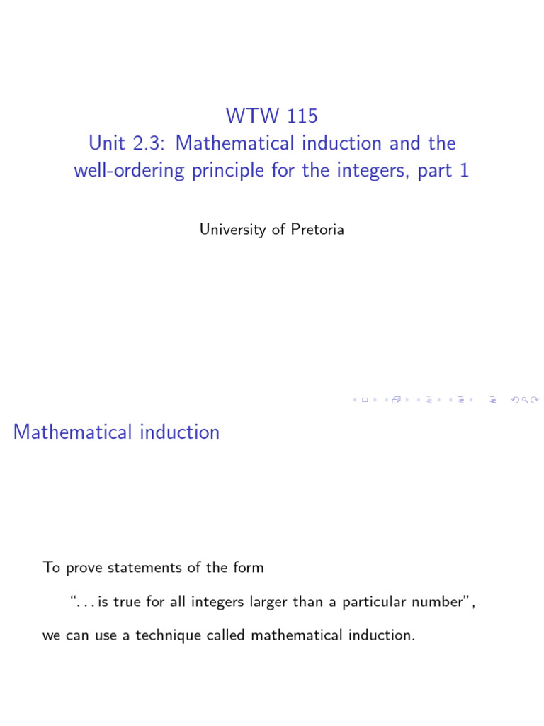 Unit 2.3: Mathematical induction and the