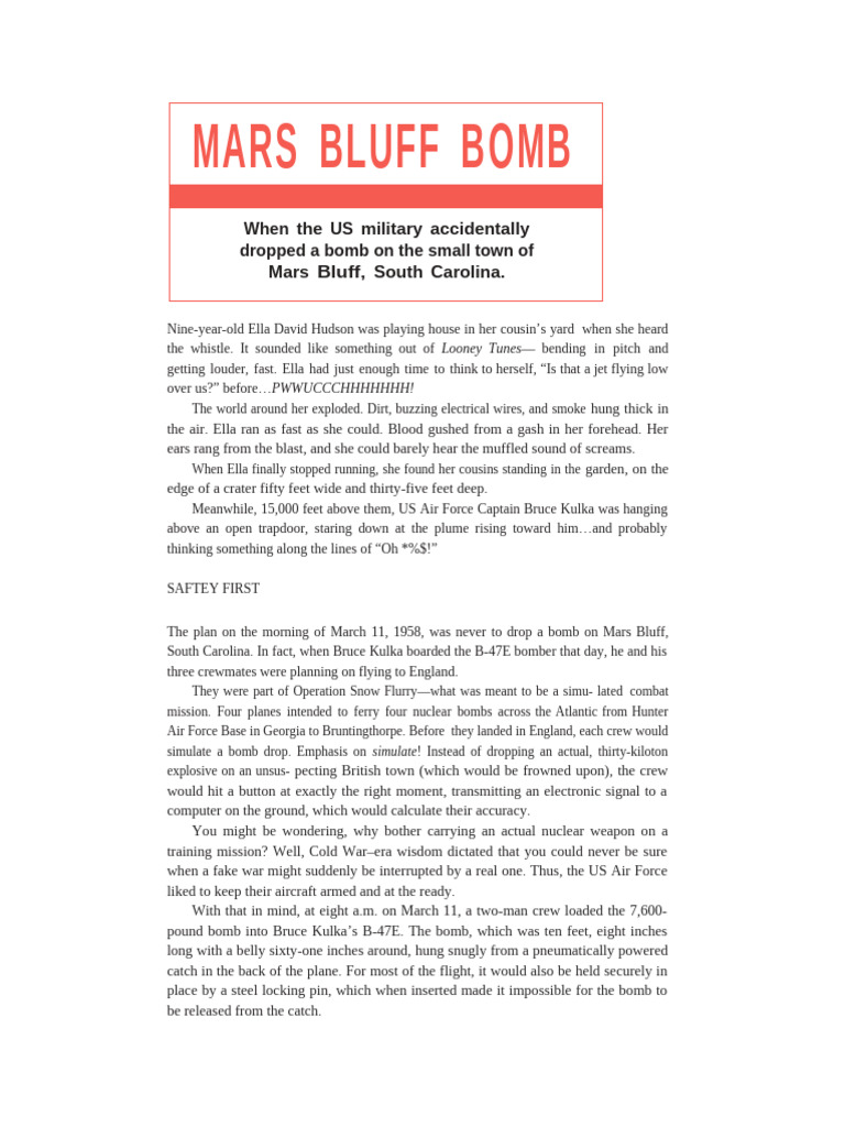 After accidentally dropping an (unloaded) atomic bomb on Mars Bluff and the