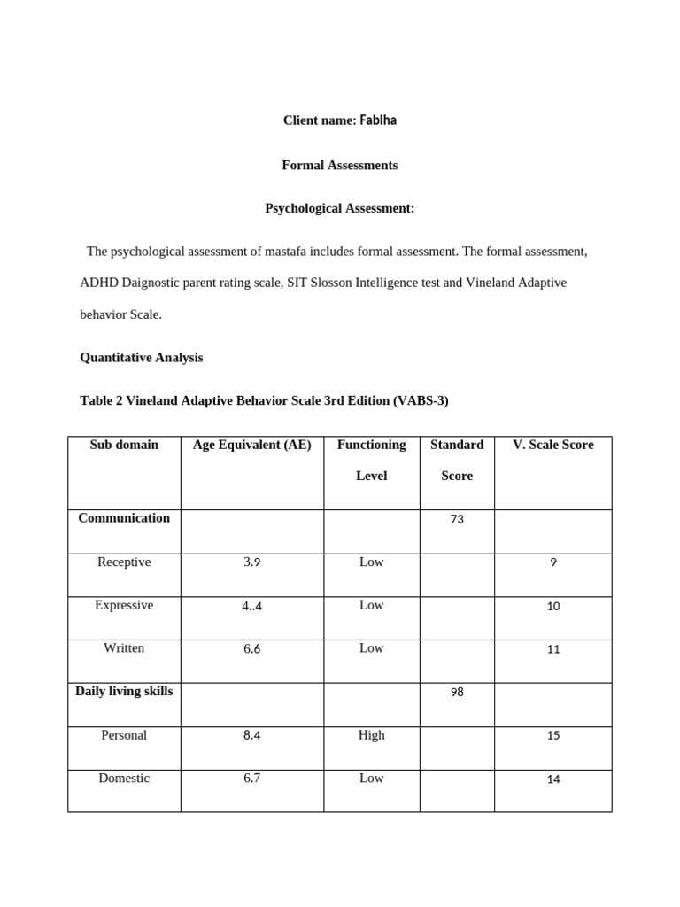 The psychological assessment of mastafa includes formal assessment. The formal assessment,
