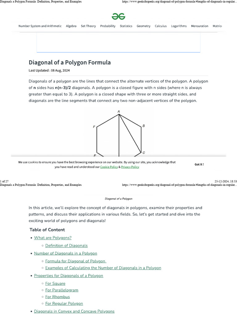 Diagonals a Polygon Formula: Definition, Properties, and Examples [Link]