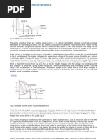 1) Static Characteristic Curves These curves show the relation between load voltage and load current under various load conditions. Hence they are also called Volt-Amp (V-A) curves. It is seen that some curves are of drooping type, while the others are of relatively flat type. A machine giving a drooping curve is said to have drooping characteristics and is described as a constant current (CC) type machine, because small variations in the voltage caused by variations in arc length during welding, do not significantly change the output current. A machine with a relatively flat curve is described as a constant voltage (CV) or constant potential (CP) type machine, because in this case small variations in load voltage caused by arc fluctuations result in substantial changes in the current output. Normally CV machines are designed for DC welding. A CV power source giving AC output is not suitable for arc welding The terms, constant current and constant voltage are technically incorrect; yet they are used and accepted by the welding industry. It is only recently that electronically controlled power sources have been developed, which are capable of giving virtually any type of curve between truly constant current and truly constant voltage. Drooping or constant current type power sources (Figure-2) are conventionally used for manual metal arc welding (MMAW) / shielded metal arc welding (SMAW) and gas tungsten arc welding (GTAW) processes. The obvious reason being that with this type of characteristics, the welding current remains substantially constant irrespective of small variations in arc length and consequent slight change in are voltage, which are unavoidable even in the case of a skilled welder. As the welding current is fairly steady, the weld quality is consistent. In this case, the short-circuit current is not excessive (normally less than 200% of the set current); hence at the time of arc striking and in case of accidental situations, the current does not exceed too much and hence the weld quality remains unimpaired.