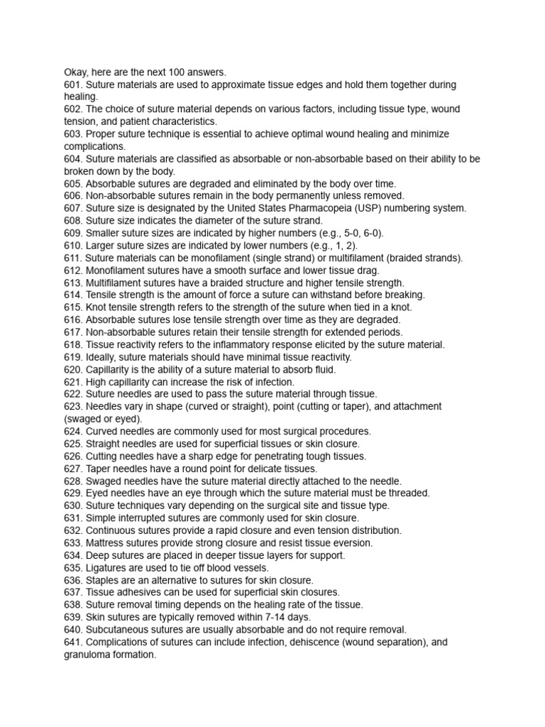 602. The choice of suture material depends on various factors, including tissue type, wound