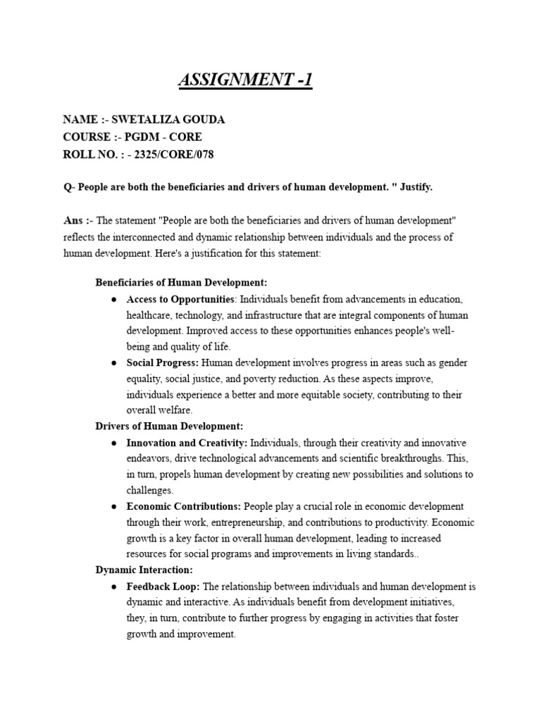 Q- People are both the beneficiaries and drivers of human development. " Justify.