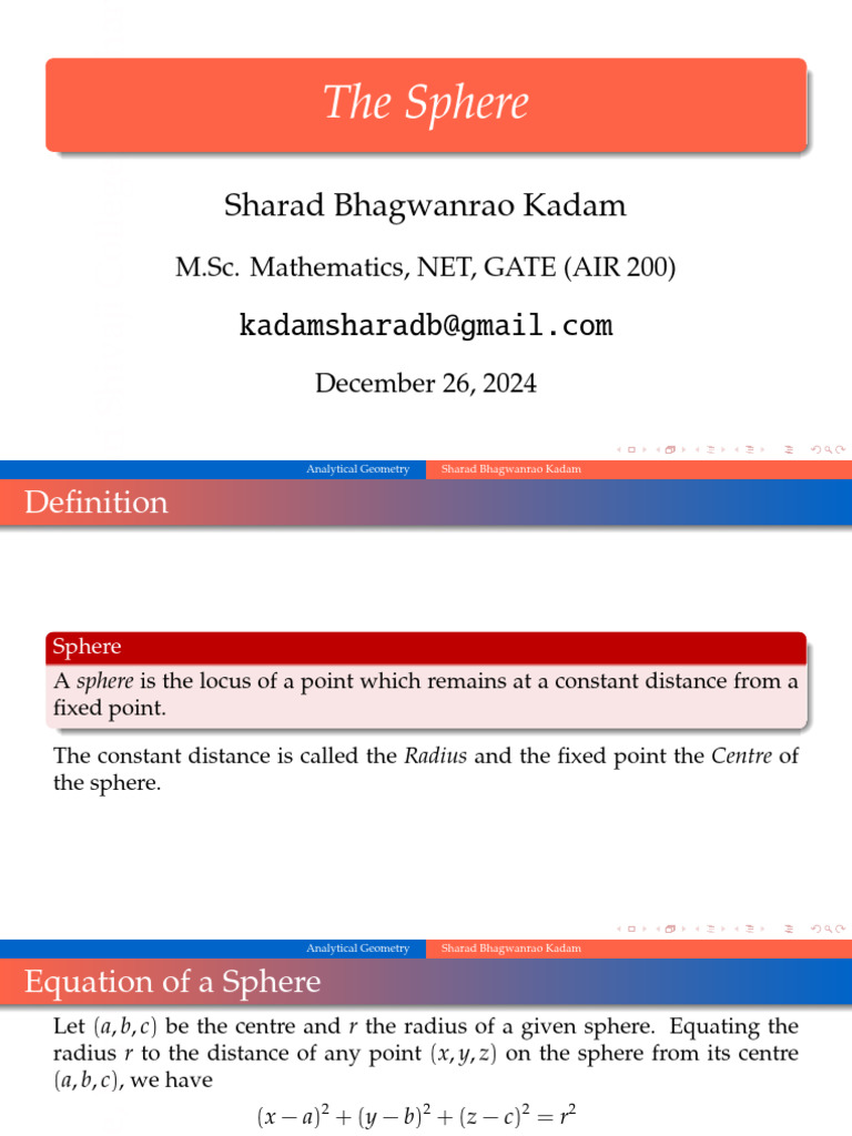 Analytical Geometry Sharad Bhagwanrao Kadam