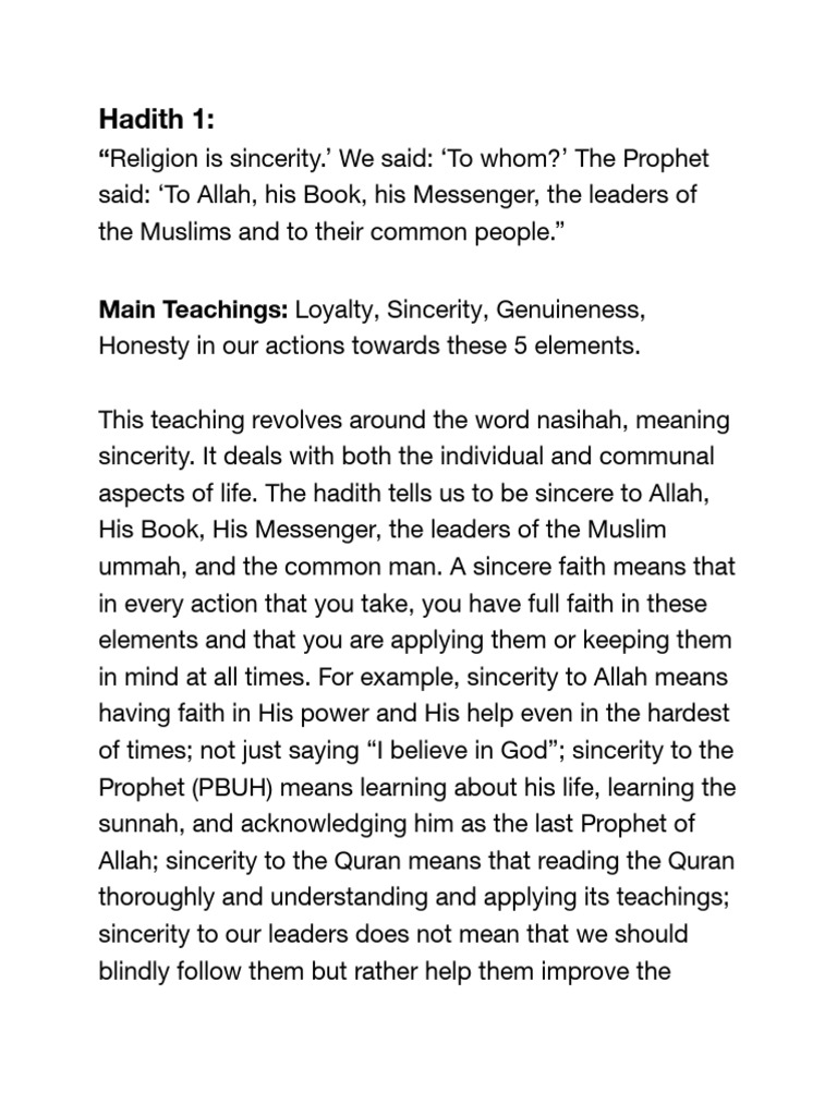“Religion is sincerity.’ We said: ‘To whom?’ The Prophet