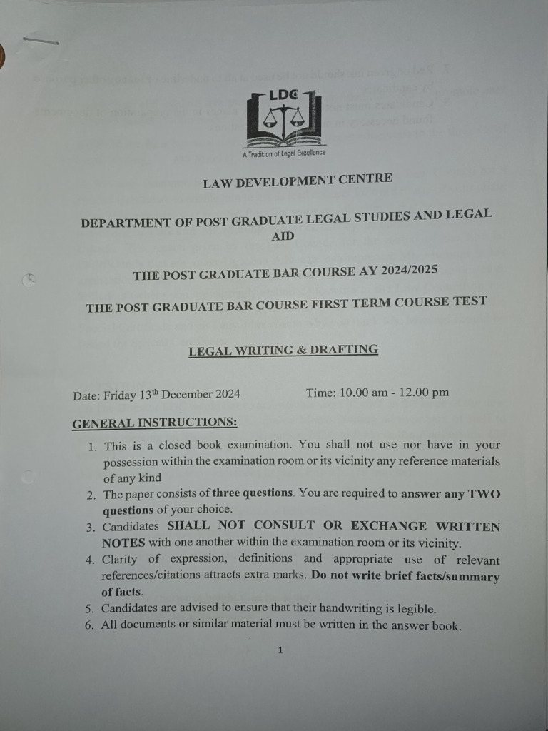 Legal Writing. (30Marks)