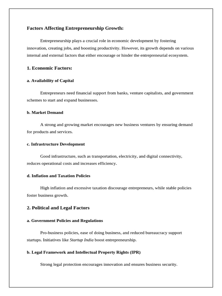 internal and external factors that either encourage or hinder the entrepreneurial ecosystem.