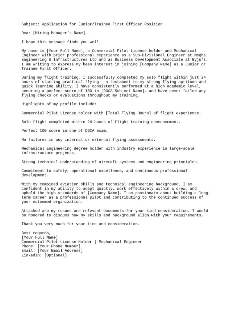 My name is [Your Full Name], a Commercial Pilot License holder and Mechanical