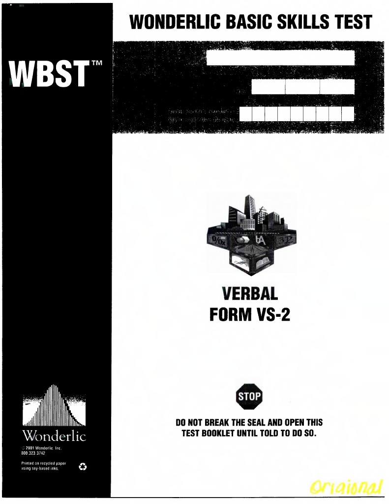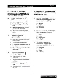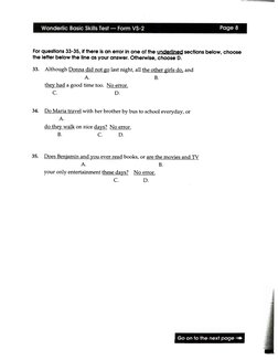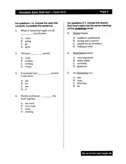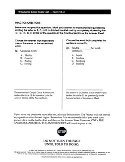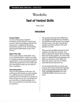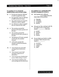 This is a test of basic verbal skills. Your score will indicate how well you are able to complete everyday reading and writing requirements. Your score may be used to indicate the grade level of your skills and also what kinds of jobs you are ready to learn or perform. There are four possible answers for each question, but only: one is correct.