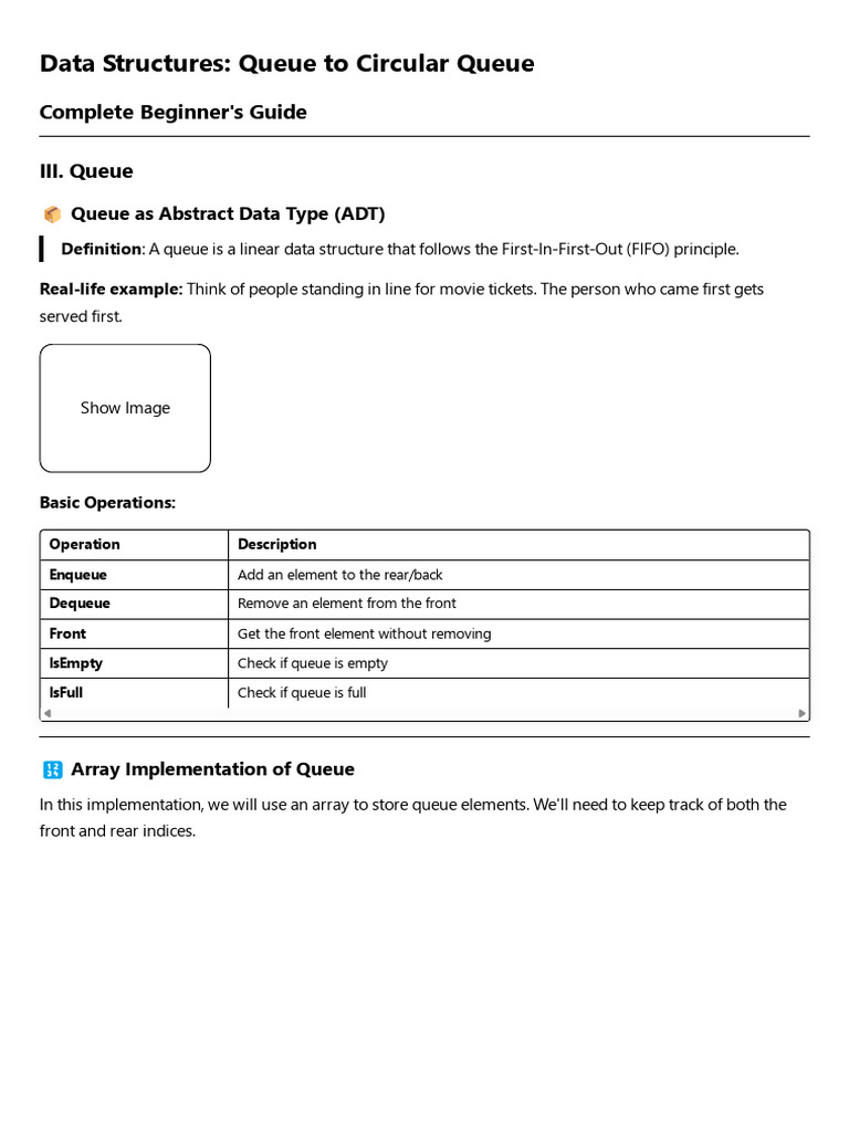 if (front == -1 || front > rear) { // If front is -1 or has crossed rear
