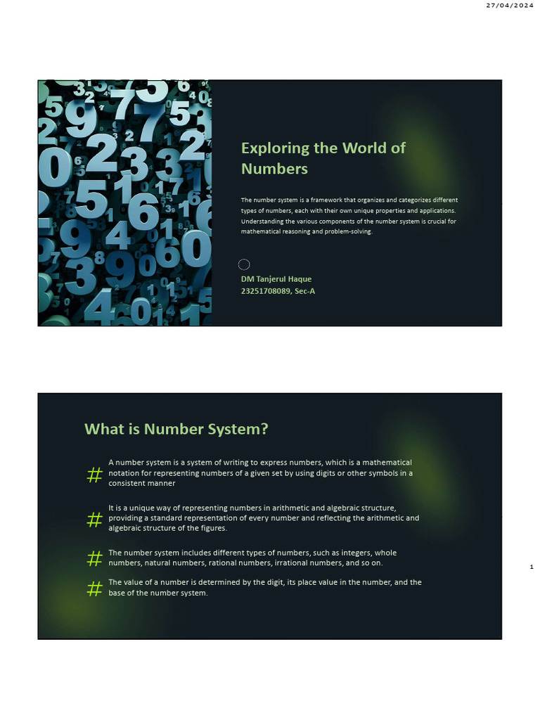 numbers, natural numbers, rational numbers, irrational numbers, and so on. 1