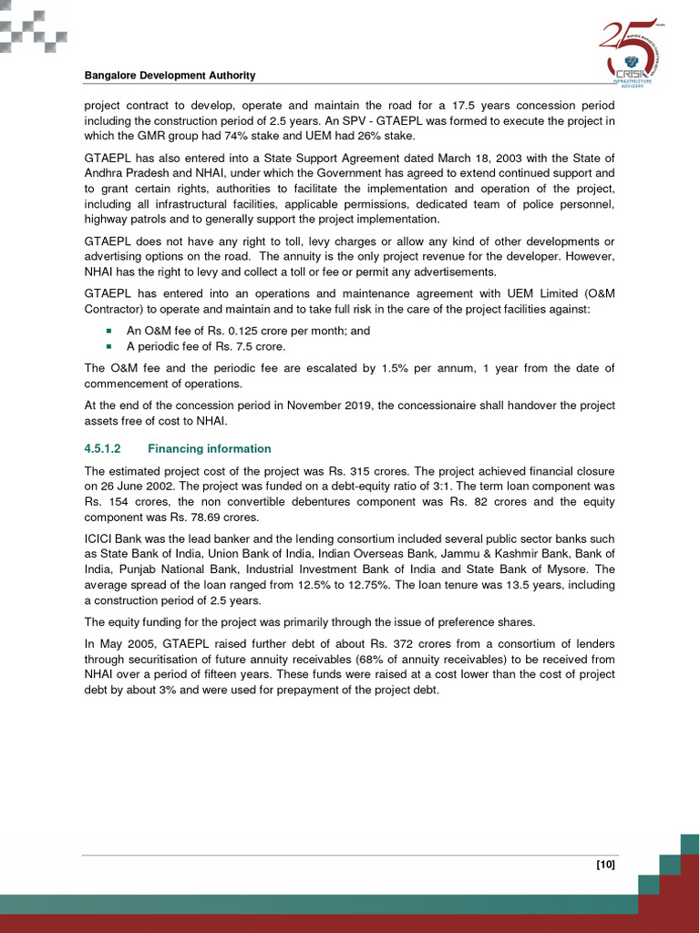 In May 2005, GTAEPL raised further debt of about Rs. 372 crores from a consortium of lenders