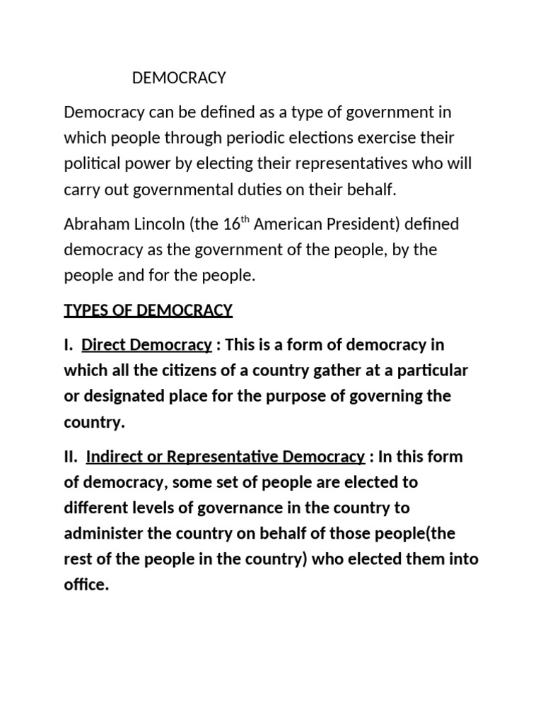 FEATURES OR CHARACTERISTICS OF DEMOCRACY