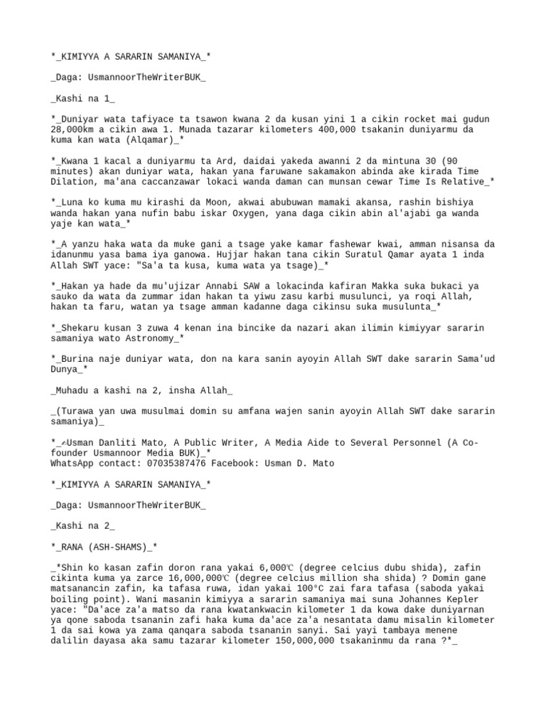 WhatsApp contact: 07035387476 Facebook: Usman D. Mato