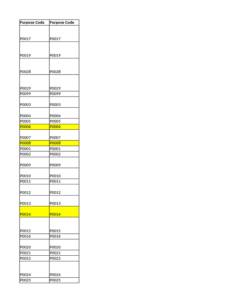 Purpose Code Purpose Code