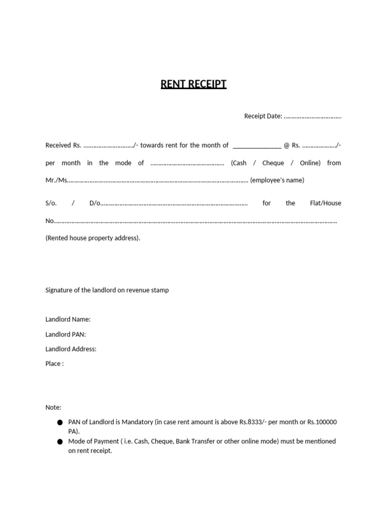 ● PAN of Landlord is Mandatory (in case rent amount is above Rs.8333/- per month or Rs.100000