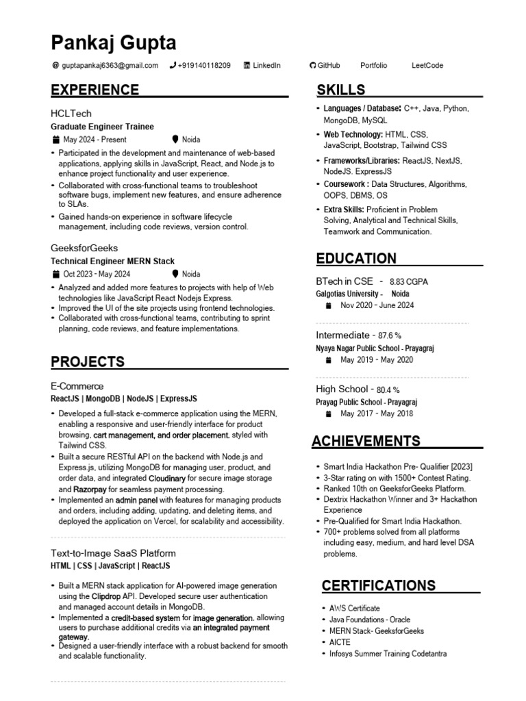 guptapankaj6363@gmail.com +919140118209 LinkedIn GitHub Portfolio LeetCode