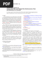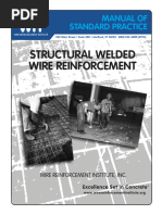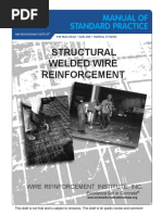 The document outlines specifications, codes, and standards related to reinforced concrete, including wire designations and properties established by the Wire Reinforcing Institute. It details the classification of wire types and their cross-sectional areas, as well as the styles of welded-wire fabric commonly used. Additionally, it mentions the ASTM's role in maintaining quality specifications and the American Concrete Institute's publications for reinforced concrete requirements and guidelines.