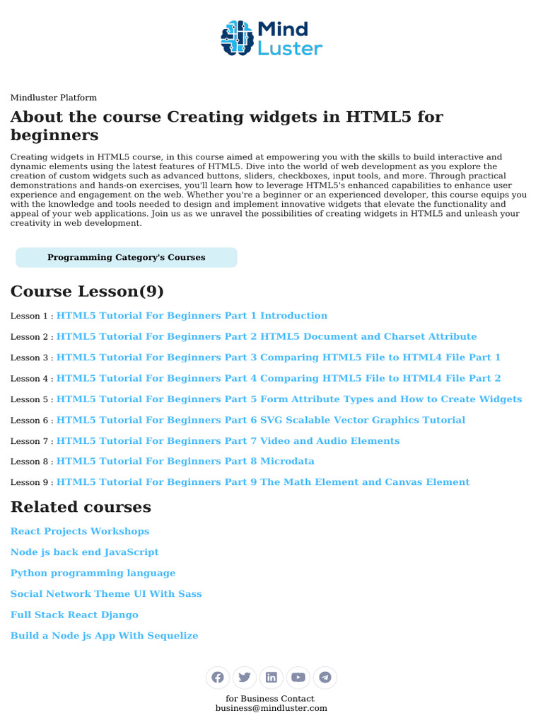 Creating widgets in HTML5 course, in this course aimed at empowering you with the skills to build interactive and