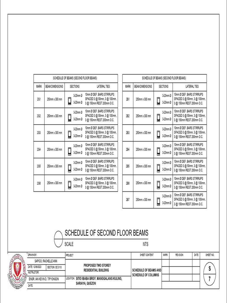 MARK BEAM DIMENSIONS SECTIONS LATERAL TIES MARK BEAM DIMENSIONS SECTIONS LATERAL TIES