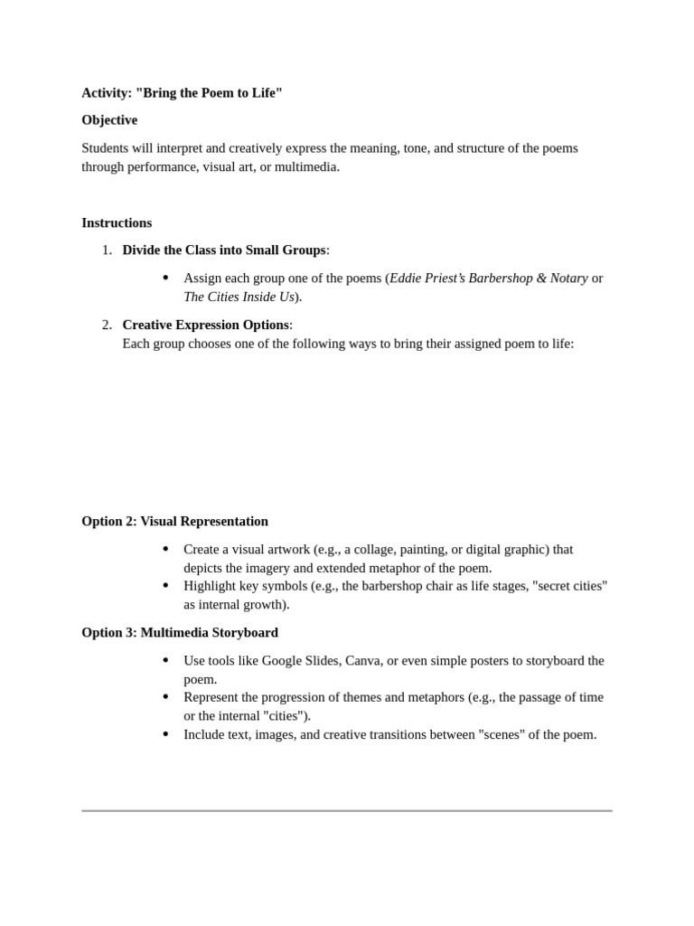 Each group chooses one of the following ways to bring their assigned poem to life: