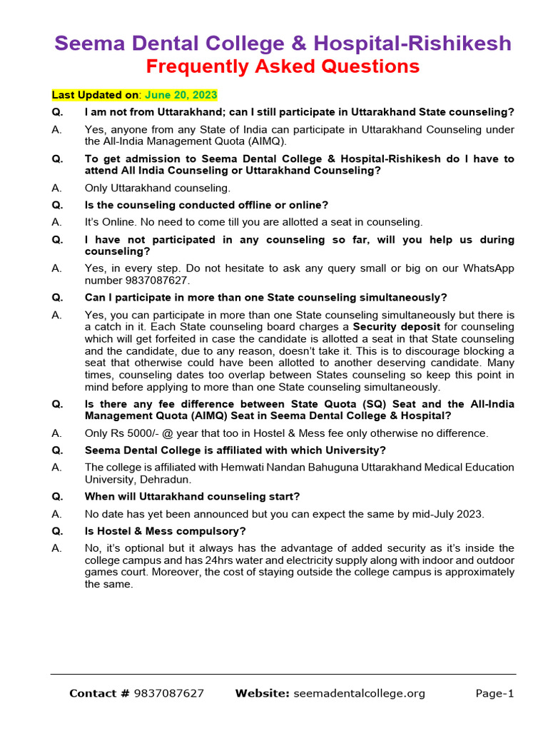 Contact # 9837087627 Website: seemadentalcollege.org Page-1