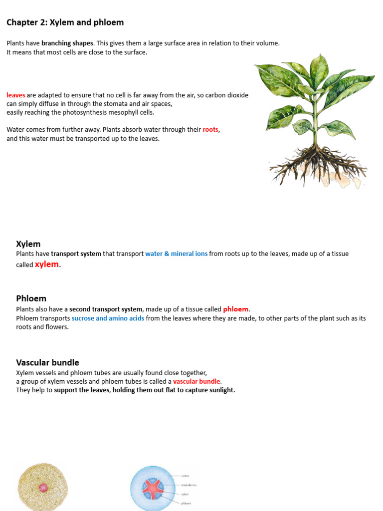 Plants have transport system that transport water & mineral ions from roots up to the leaves, made up of a tissue