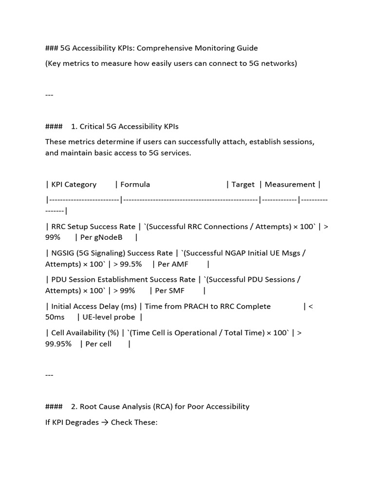 ### 5G Accessibility KPIs: Comprehensive Monitoring Guide