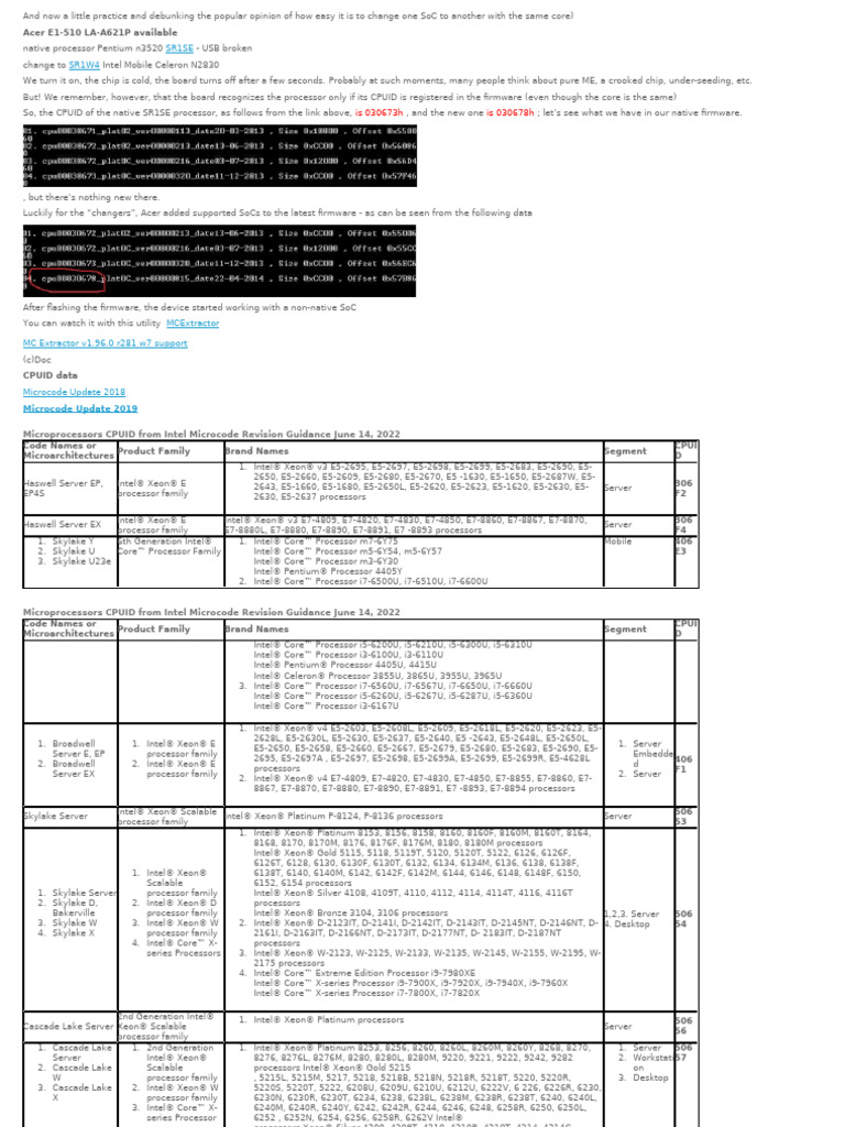 Microprocessors CPUID from Intel Microcode Revision Guidance June 14, 2022