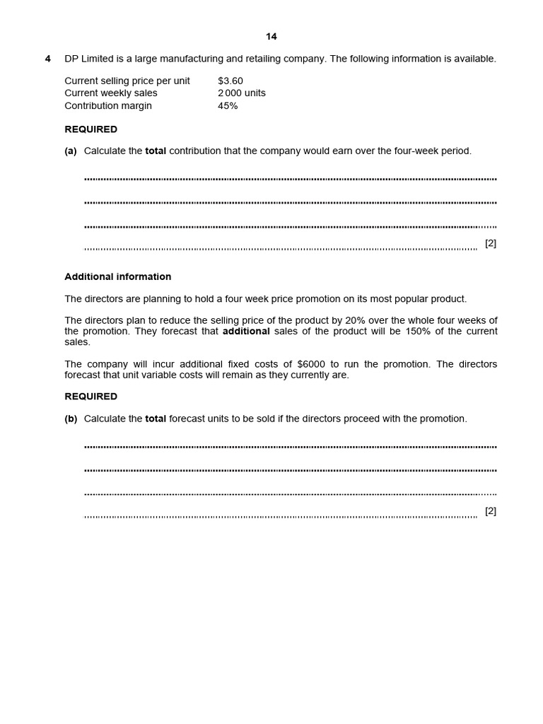 4 DP Limited is a large manufacturing and retailing company. The following information is available.