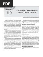 IAP INFECTIOUS DISEASES CHAPTER RECOMMENDATIONS Artemesinin Combination Therapy Antimalarial combination therapy is simultaneous use of two or more blood schizontocidal drugs with different mode of action in unrelated biochemical targets in the parasite. According to WHO, one of the partner in combination therapy should be an artemisinin derivative due to its high killing rate (reduces parasite number 10,000 fold per cycle whereas other antimalarial reduces 100 to 1000 fold per cycle), lack of serious side effects, relatively low level of resistance and rapid elimination rate, which ensures that the parasites are not exposed to subtherapeutic levels of the drug. When administered in combination with rapidly eliminated antimalarials (clindamycin, tetracycline), a seven days course of treatment is required and adherence to treatment is usually poor. If artemesinin derivatives are combined with slowly eliminated antimalarials [SP, mefloquine (MQ), lumefantrine], shorter courses of treatment (3 days) are effective which ensures better treatment adherence. These combinations also protect against emergence of drug resistance despite the fact that they do leave the slowly eliminated tail of long acting drugs unprotected.