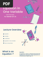 of a one variable equation: 4m + 18 = 3m – 2. The only variable in this equation is m.