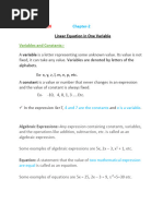 Algebraic Expressions and Linear Equations: A Consolidation of The Basics