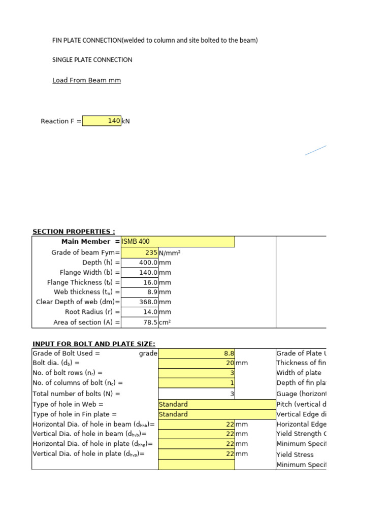 Vertical Dia. of hole in beam (dhvb)= 22 mm Yield Strength Of Rolled Member