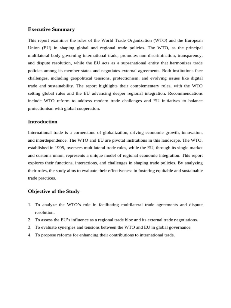 This report examines the roles of the World Trade Organization (WTO) and the European