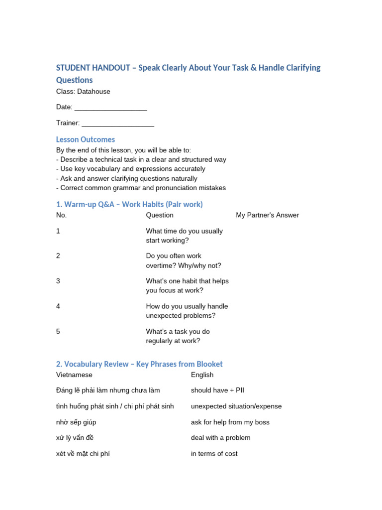 STUDENT HANDOUT – Speak Clearly About Your Task & Handle Clarifying