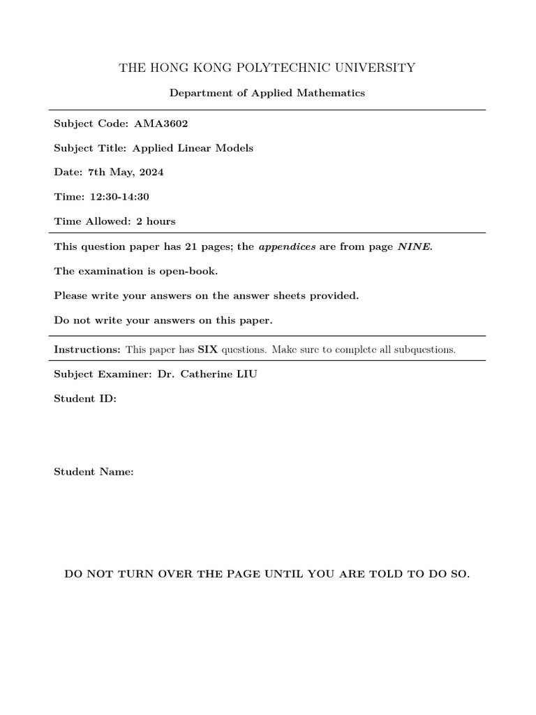 Instructions: This paper has SIX questions. Make sure to complete all subquestions.
