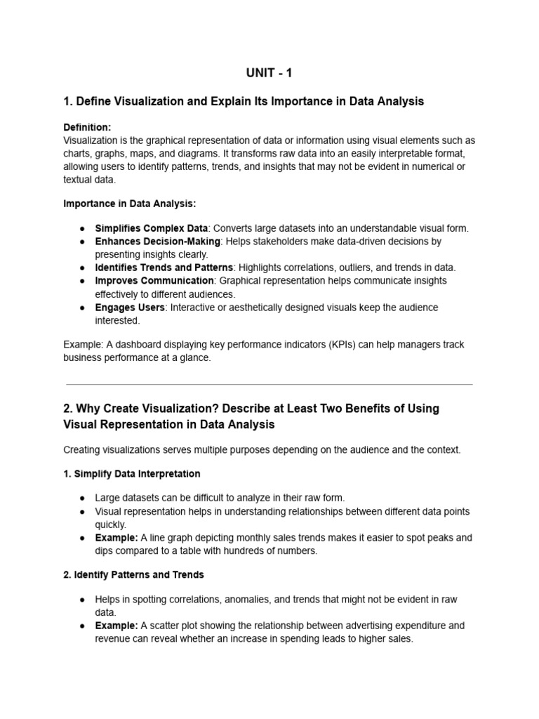 1. Define Visualization and Explain Its Importance in Data Analysis