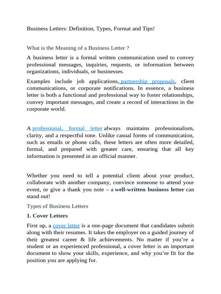 A business letter is a formal written communication used to convey