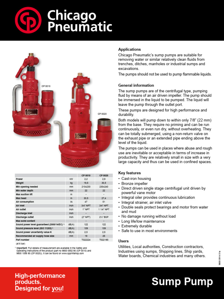 Chicago Pneumatic’s sump pumps are suitable for