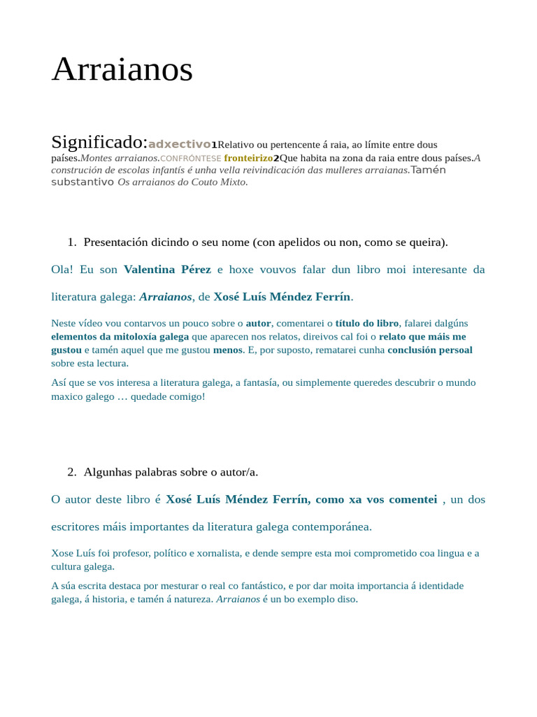 E ata aquí o meu comentario sobre Arraianos. Grazas por quedar comigo, espero que vos animedes