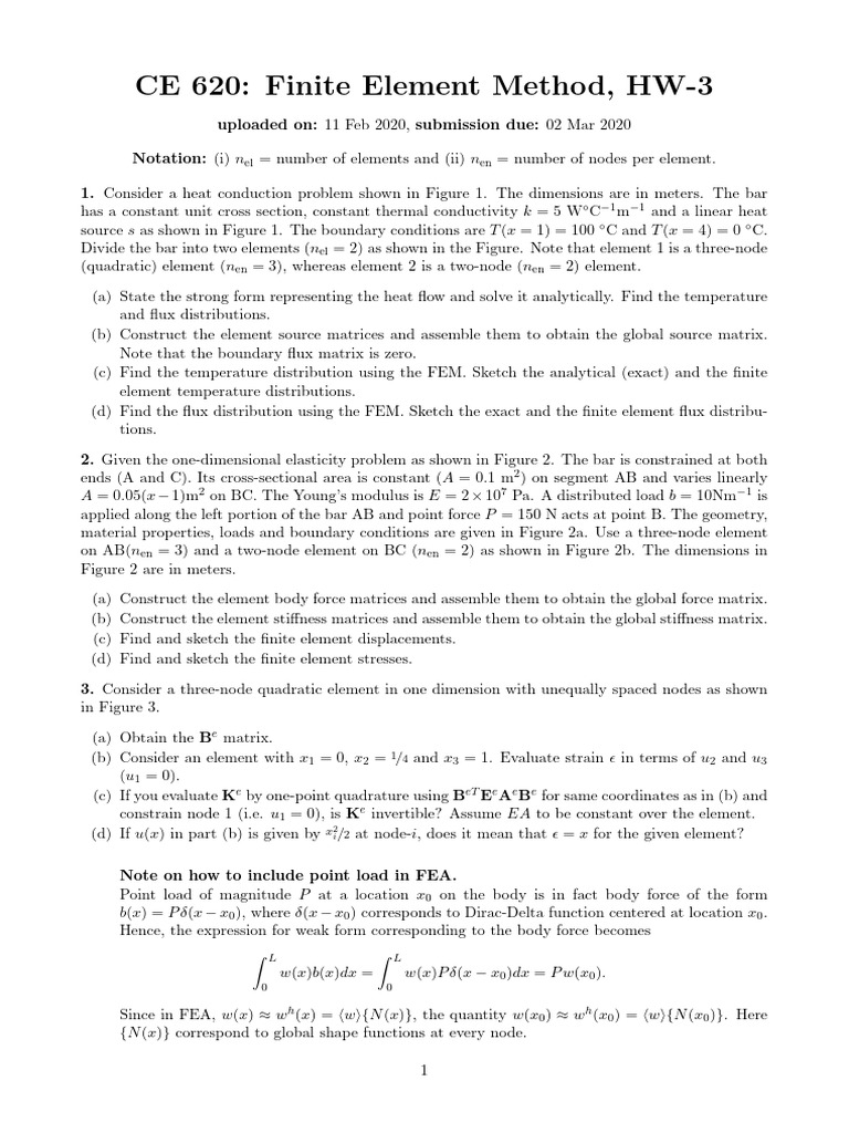 material properties, loads and boundary conditions are given in Figure 2a. Use a three-node element