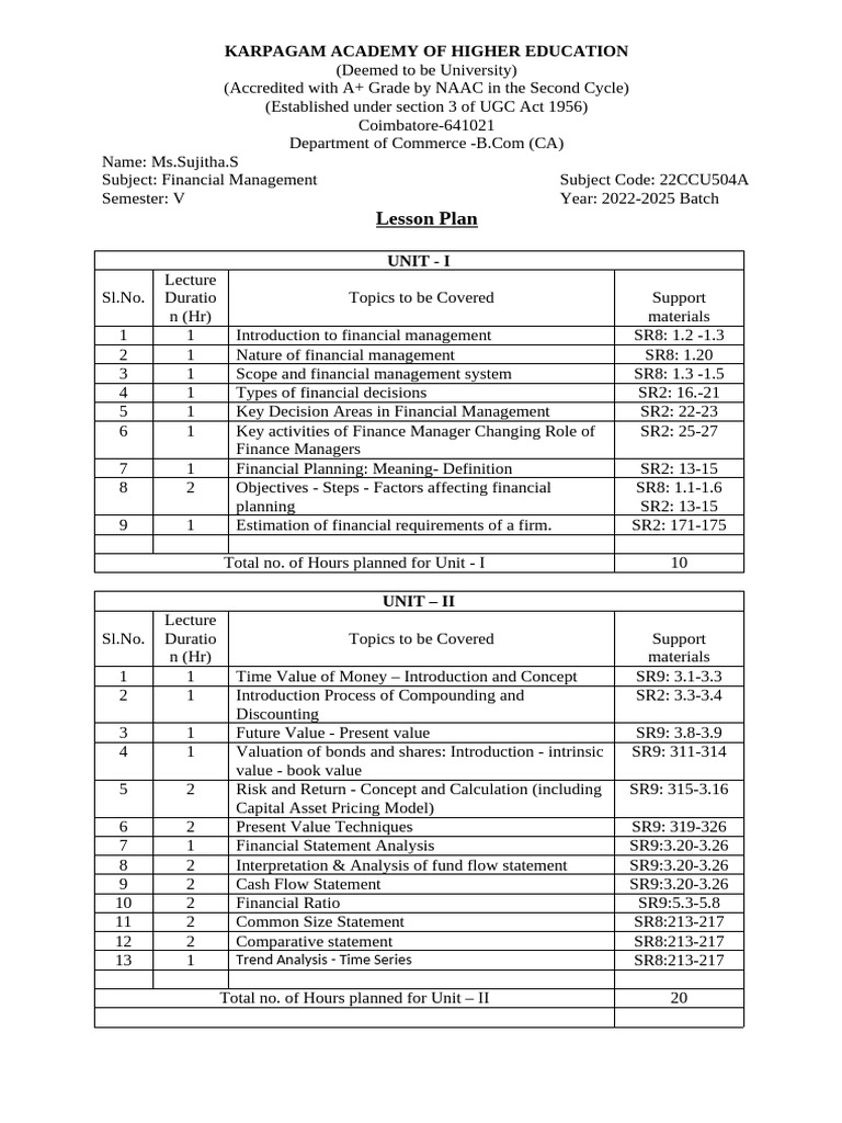 SR2: S.N. Maheswari (2019), Financial Management, New Delhi, Sultan and Chand and sons.