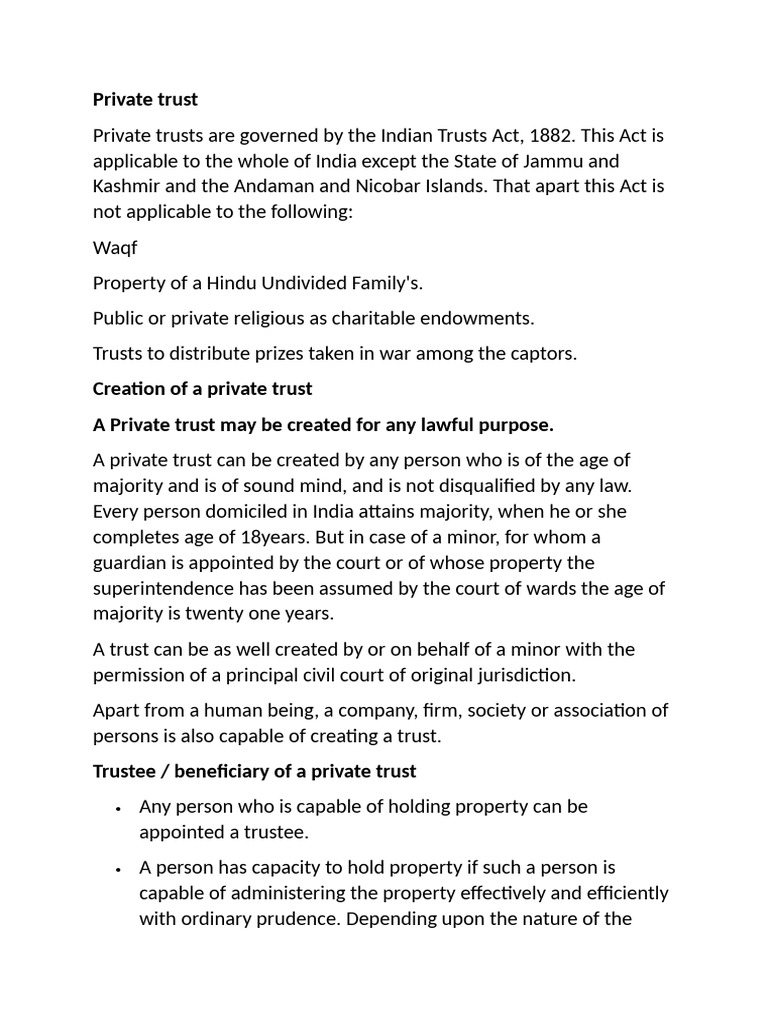 Private trusts are governed by the Indian Trusts Act, 1882. This Act is