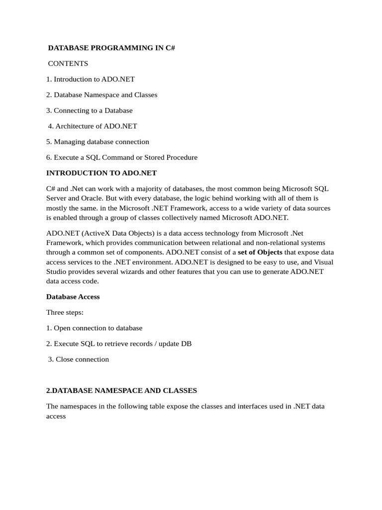 2.DATABASE NAMESPACE AND CLASSES
