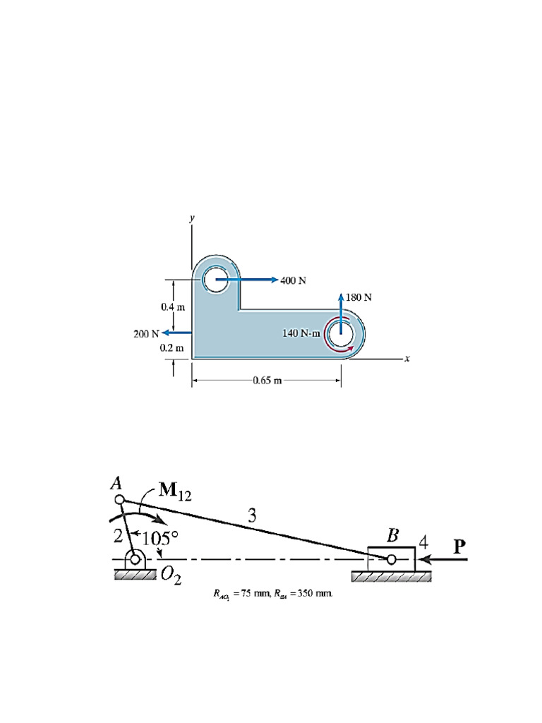 1. The bracket is subjected to three forces and a couple. If you represent this