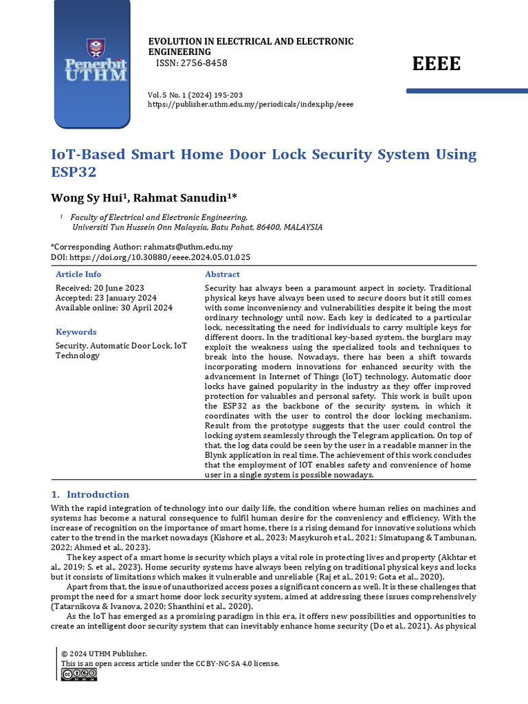 203 Evolution in Electrical and Electronic Engineering Vol. 5 No. 1 (2024) p. 195-203