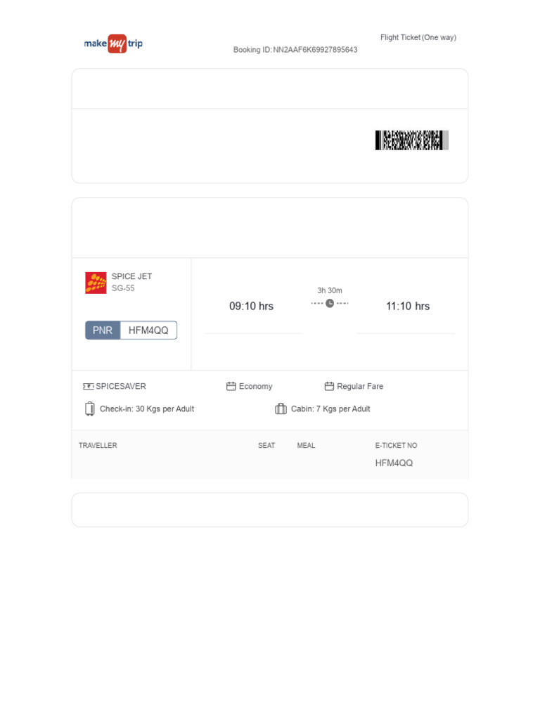 TRAVELLER SEAT MEAL E-TICKET NO