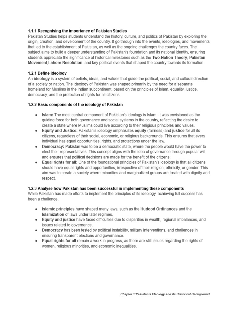 subject aims to build a deeper understanding of Pakistan's foundation and its national identity, ensuring