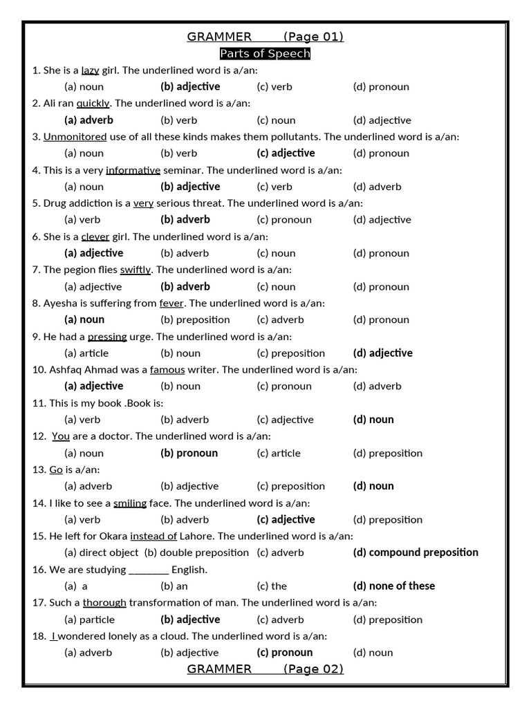 (a) verb (b) adverb (c) pronoun (d) adjective